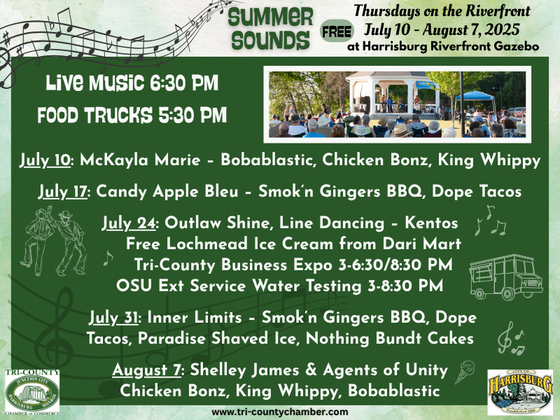 The Summer Sounds committee is a joint partnership between the City of Harrisburg and the Tri-County Chamber of Commerce, supporting tourism, community events, and the local economy.