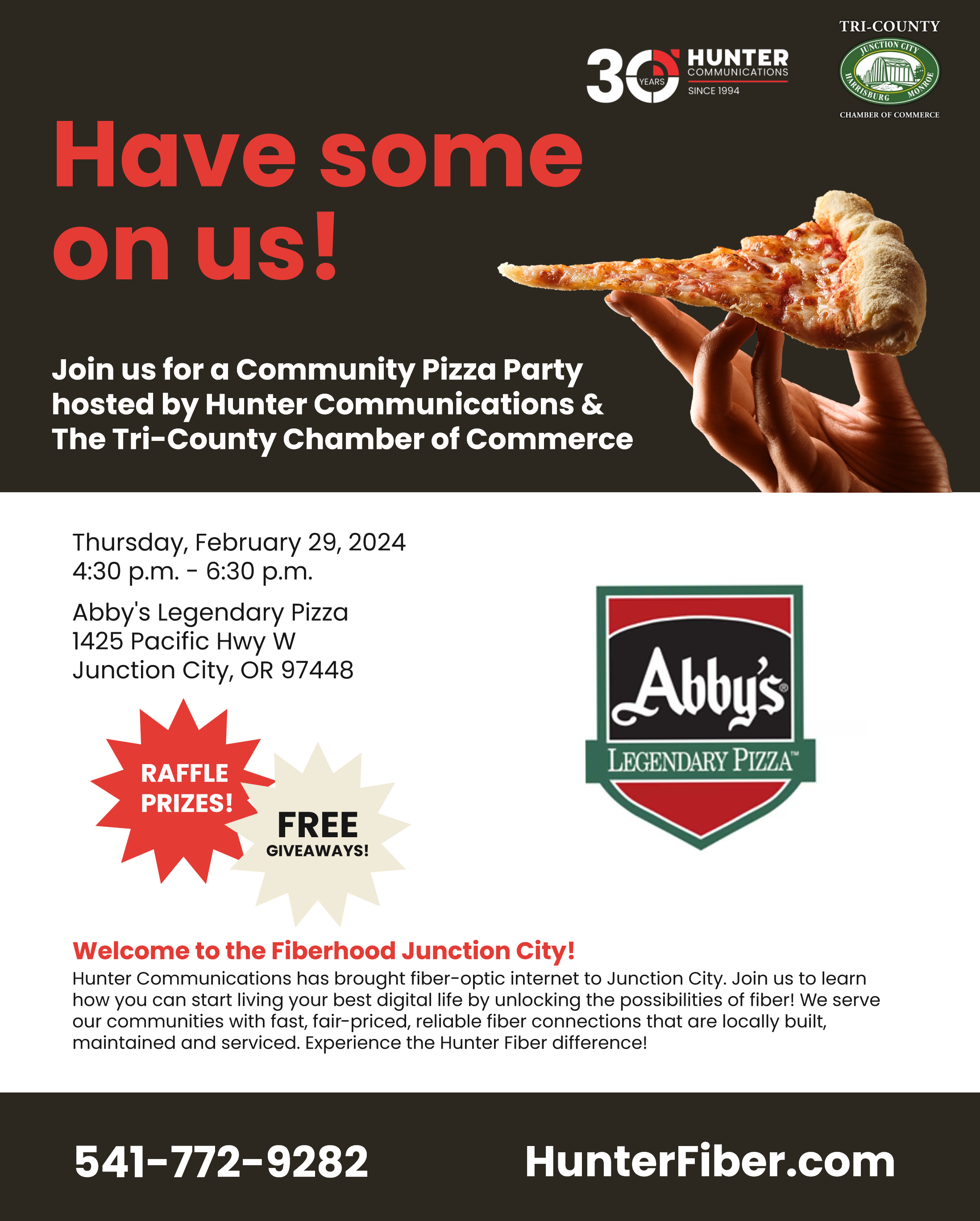 Join us and Hunters Communications for a Business After Hours to celebrate their expansion into Junction City. A much-needed option for exceptional high-speed fiber optic internet and phone services to businesses and residences.